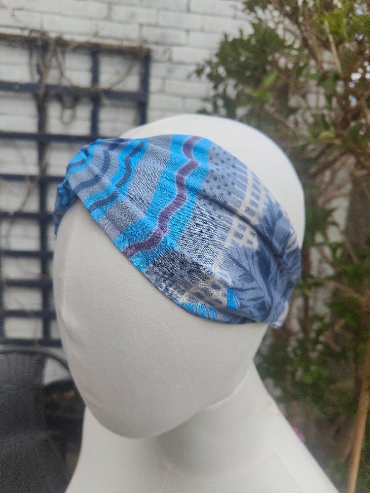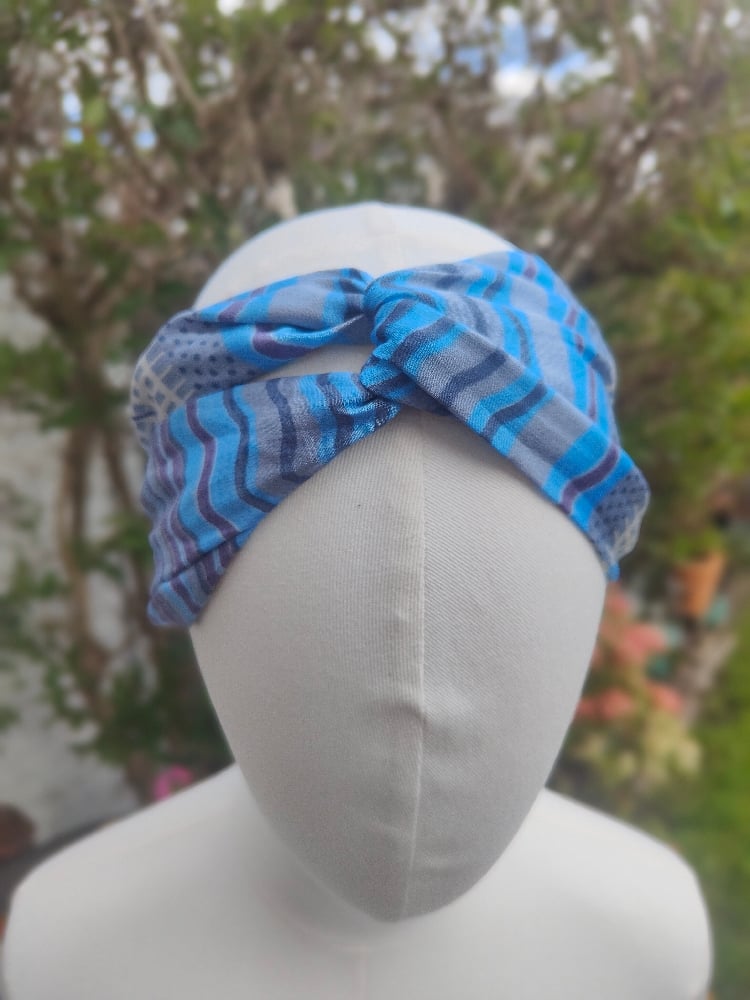 Boho turban Head Band- sari fabric blue stripes