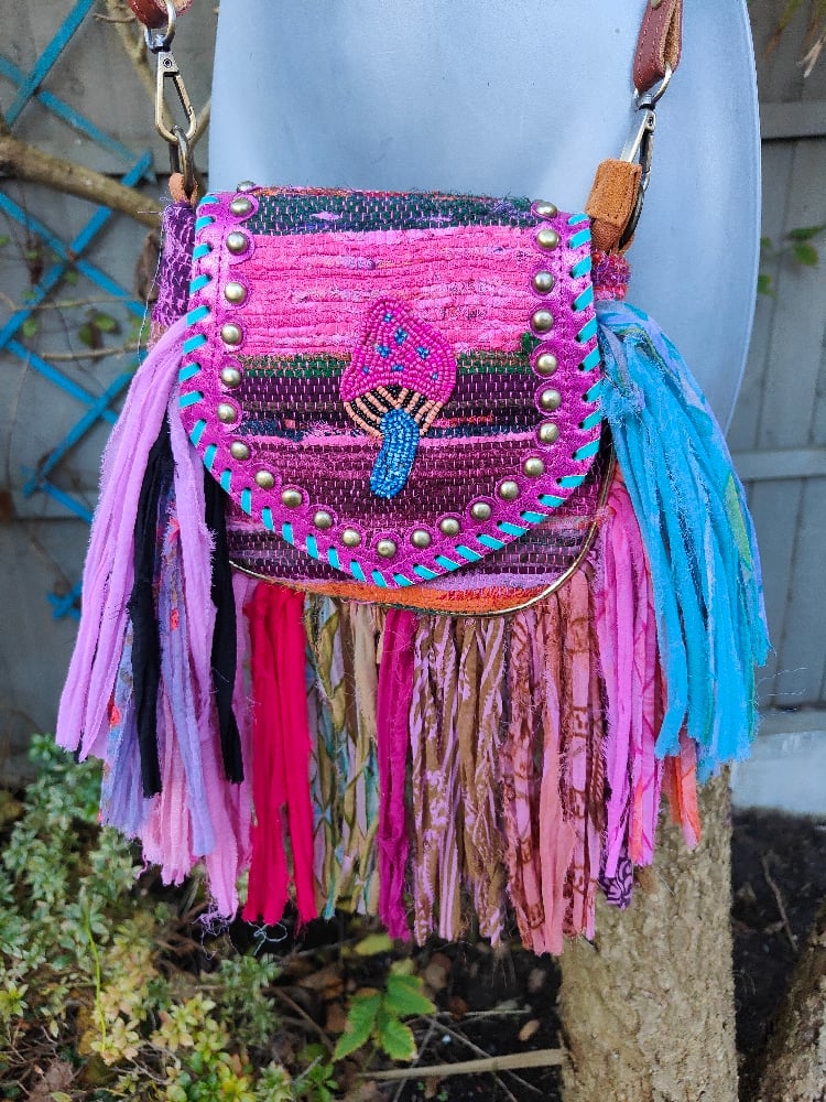 These bags are truly works of art, made from patchwork saris and then rag sari frills.