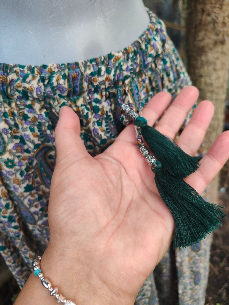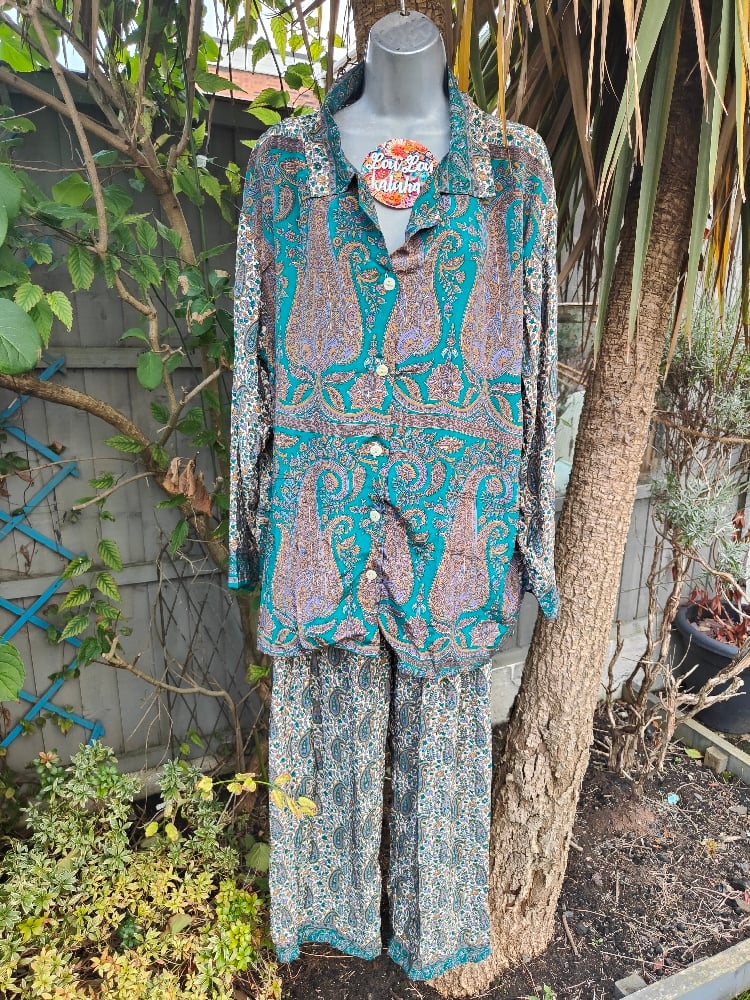 M/l Sari PJ lounge set with Bag tassel green Paisley