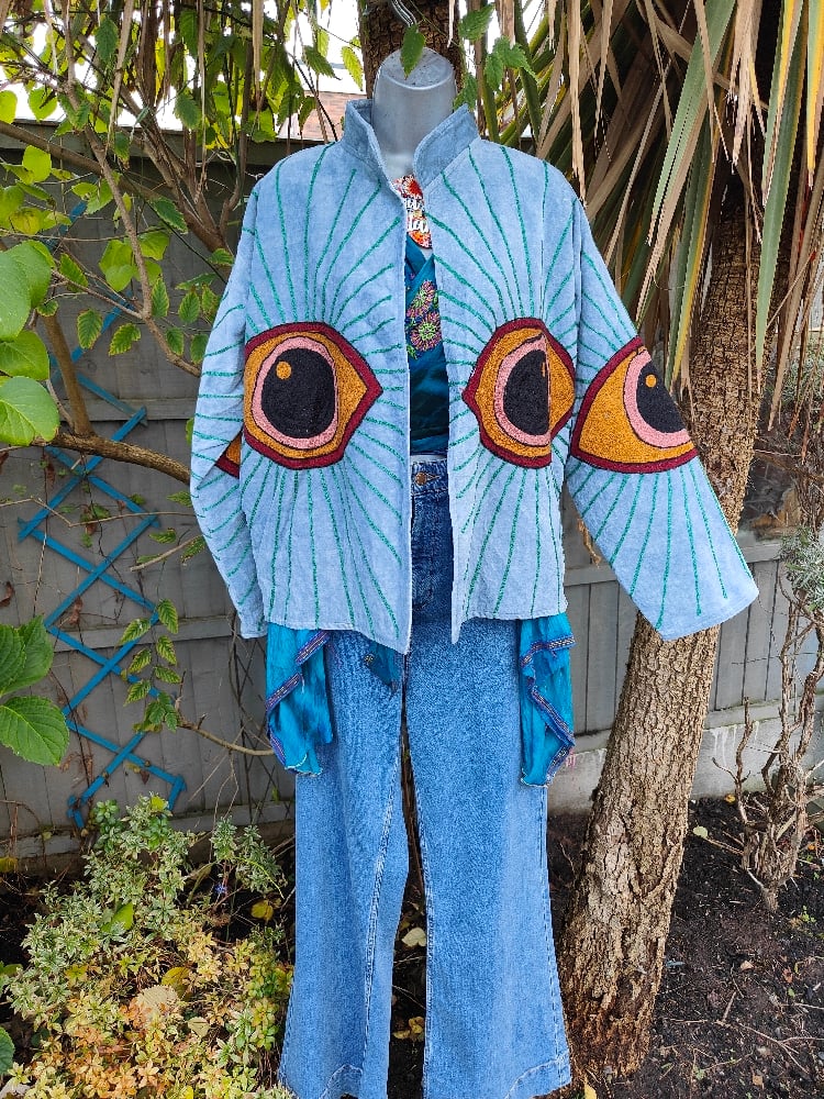 Wanderlust - Velvet evil eye protection jacket - Grey /light blue 6-12 uk