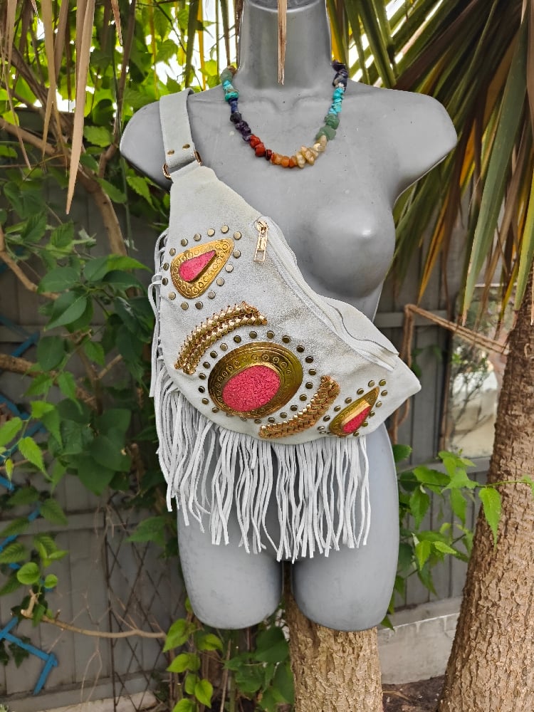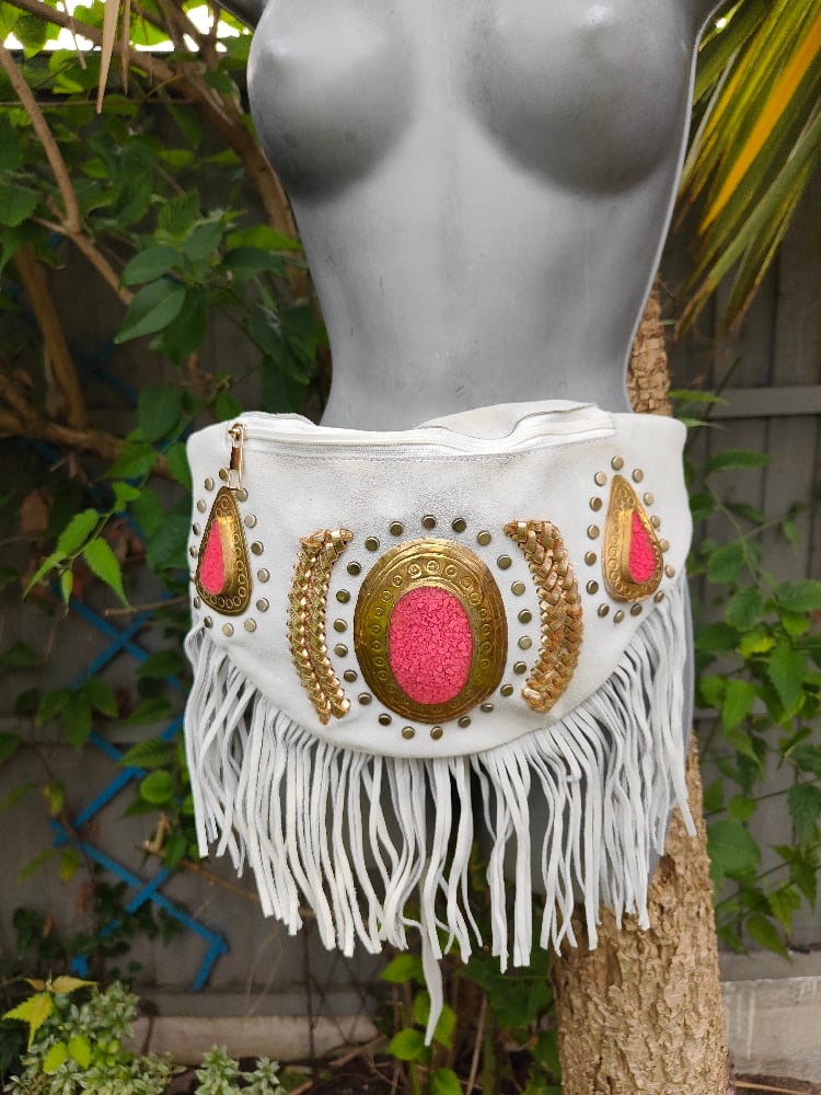 Dolly Bum bag suede fringe tassels WHITE and Moroccan Stone