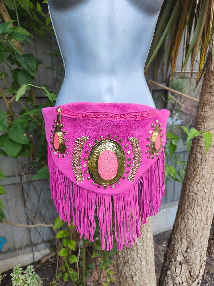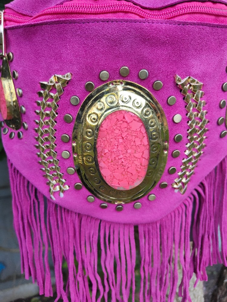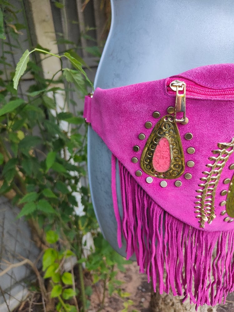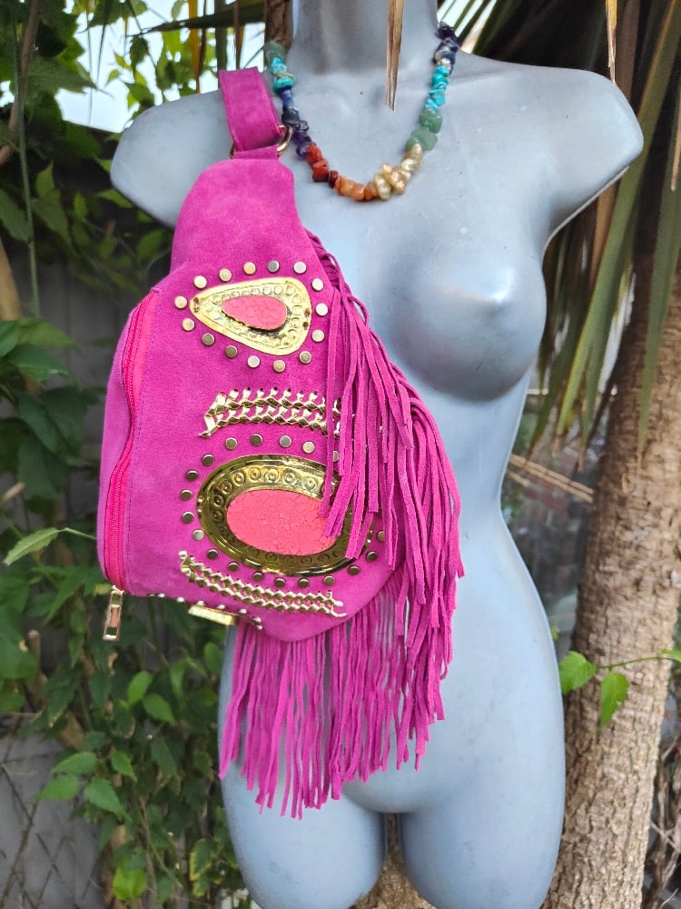 Dolly Bum bag suede fringe tassels HOT PINK and Moroccan Stone