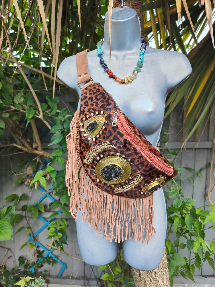 Dolly Bum bag suede fringe tassels LEOPARD and Moroccan Stone