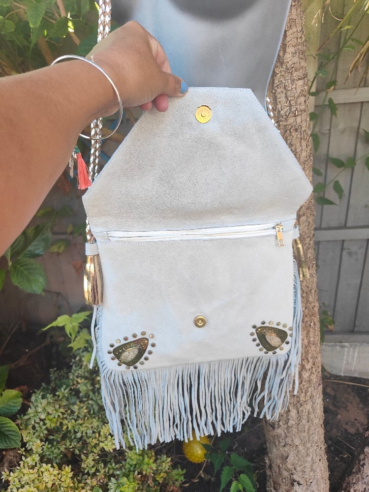 Yellowstone cross over body bag fringes / Moroccan stone CREAM
