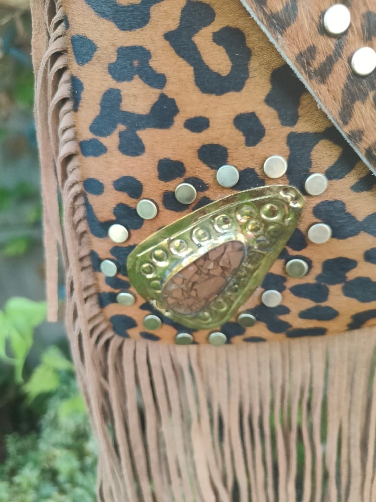 Yellowstone cross over body bag fringes / Moroccan stone LEOPARD