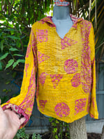 FESTIE Kantha Hoodie with pocket -yellow pink