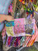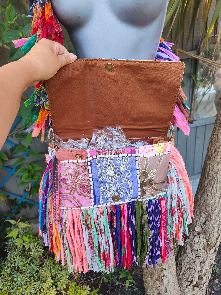 These bags are truly works of art, made from patchwork saris and then rag sari frills.