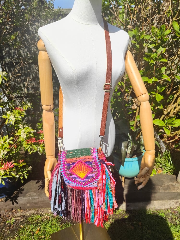 These bags are truly works of art, made from patchwork saris and then rag sari frills.