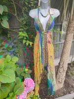 Measures 55 inches from top of halter top but then the ties or very long so can make shorter or longer