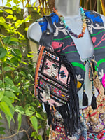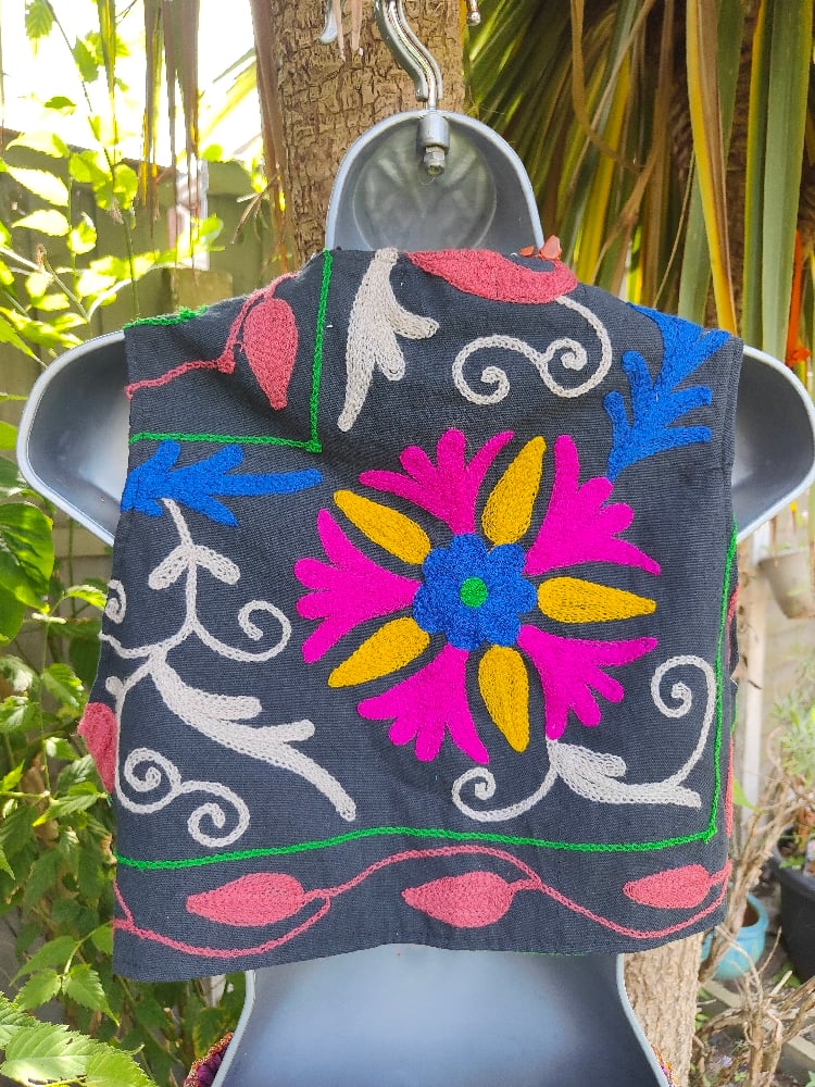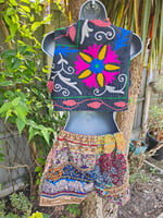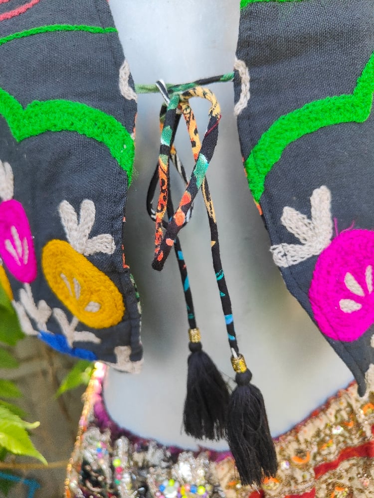 NEW YORK cropped embroidered auzani fabric waistcoat Top with tassel tie details