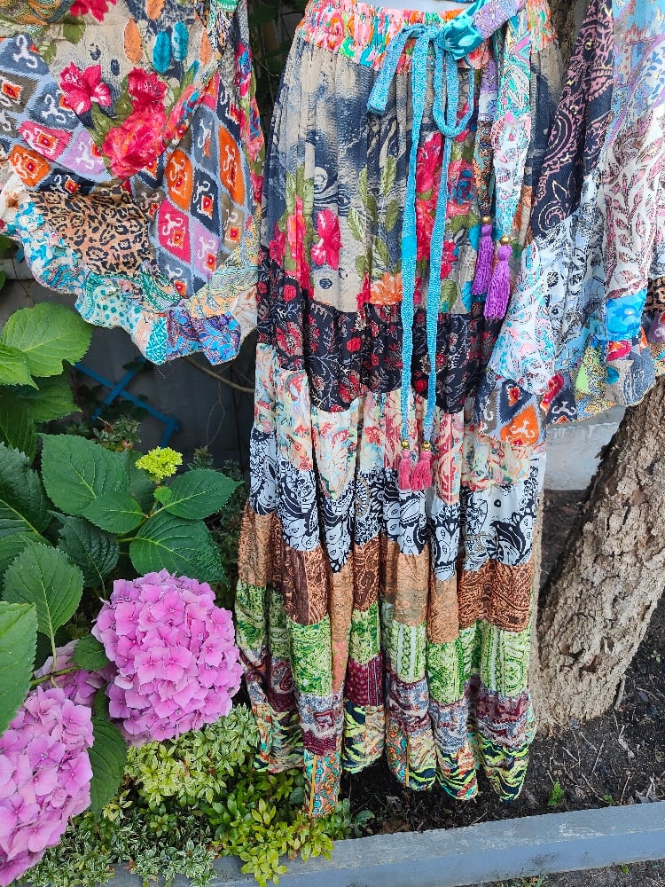These take an age to make, each piece of fabric is sewn together and then they are sewn into trousers- totally unique and one offs