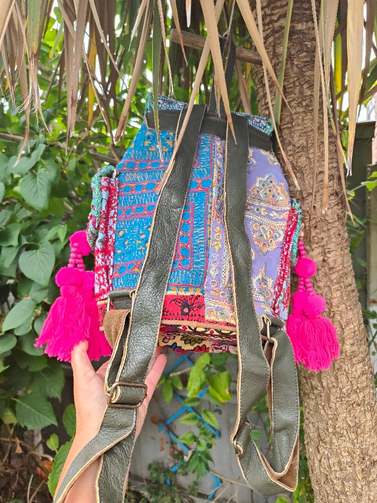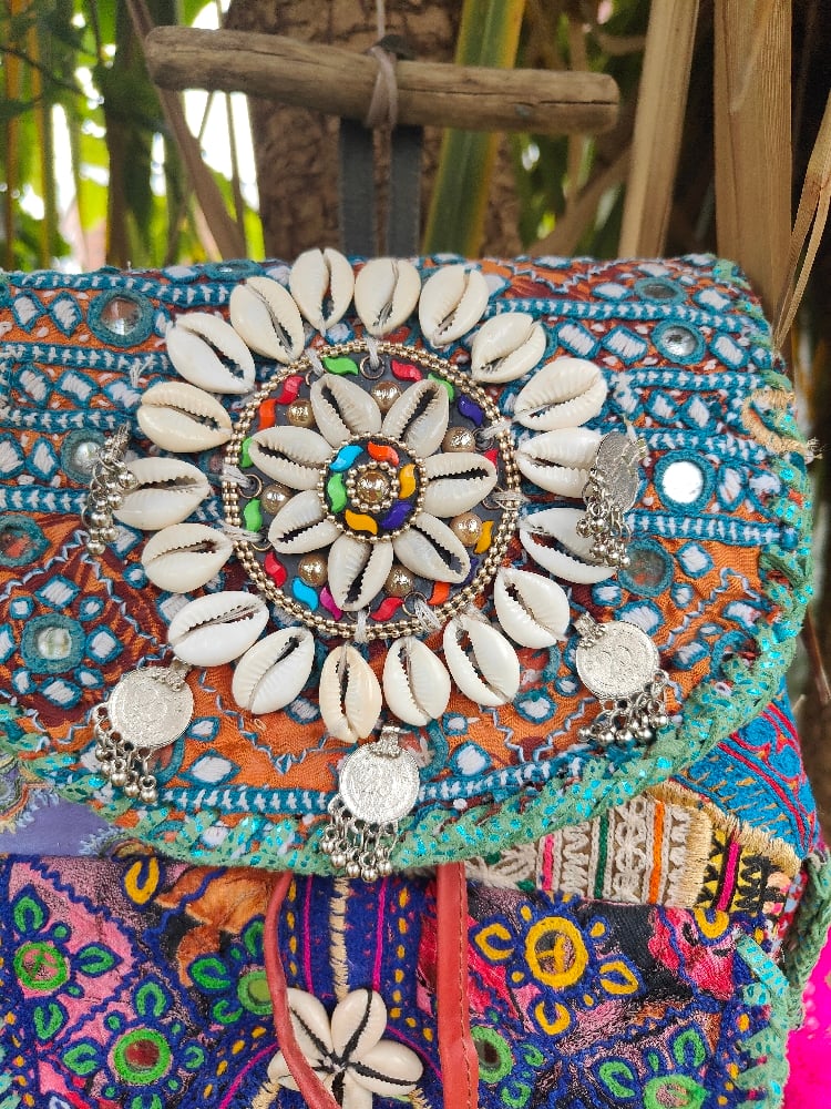Made from vintage Afghan patches and charms