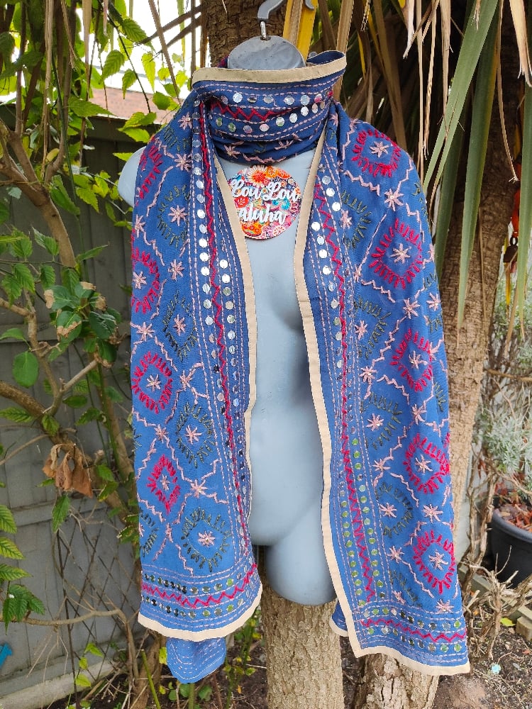 THASSOS PHULKARI NEEDLEWORK EMBROIDERED SCARF/ PASHIMA