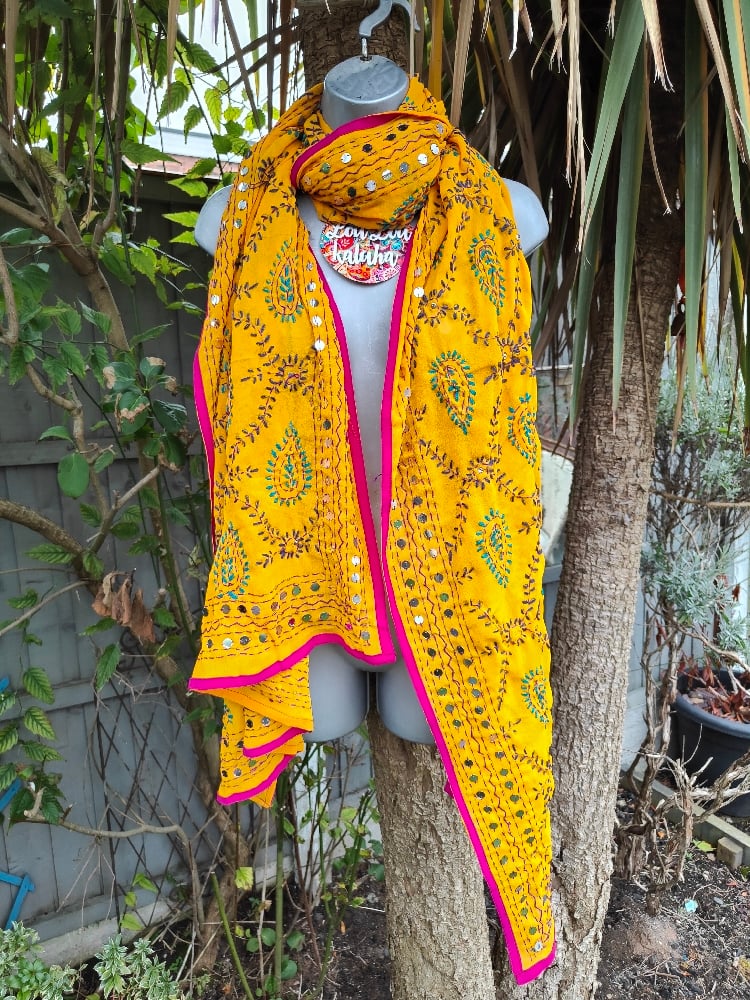 THASSOS PHULKARI NEEDLEWORK EMBROIDERED SCARF/ PASHIMA