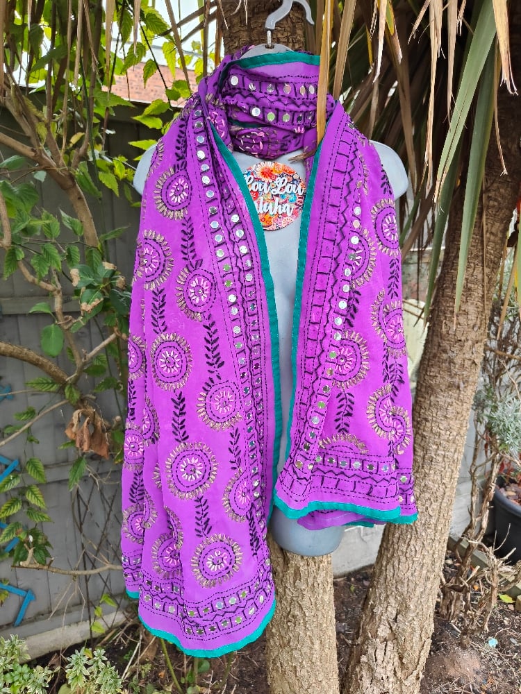 THASSOS PHULKARI NEEDLEWORK EMBROIDERED SCARF/ PASHIMA