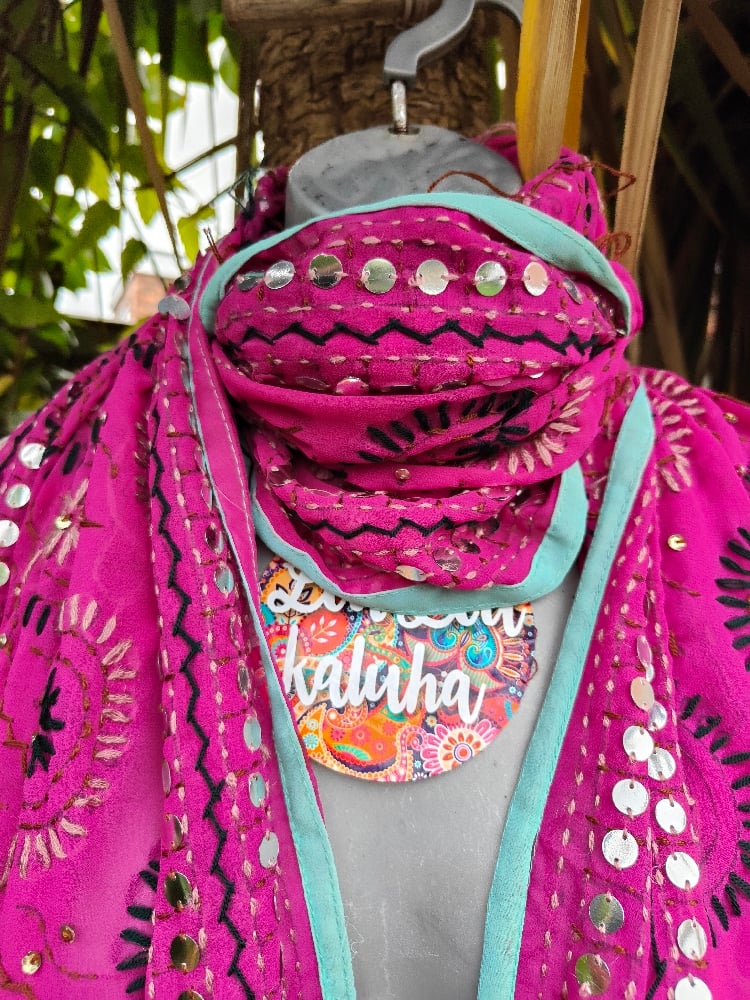 THASSOS PHULKARI NEEDLEWORK EMBROIDERED SCARF/ PASHIMA