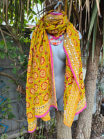 Thassos scarf -Yellow with red flicks and hot pink trim