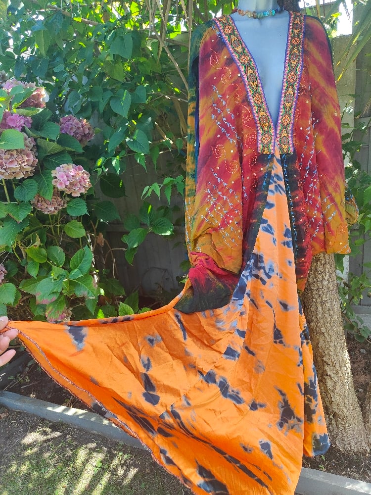 Wanderlust maxi dress Sari tie dye Red n Orange upto 18 uk