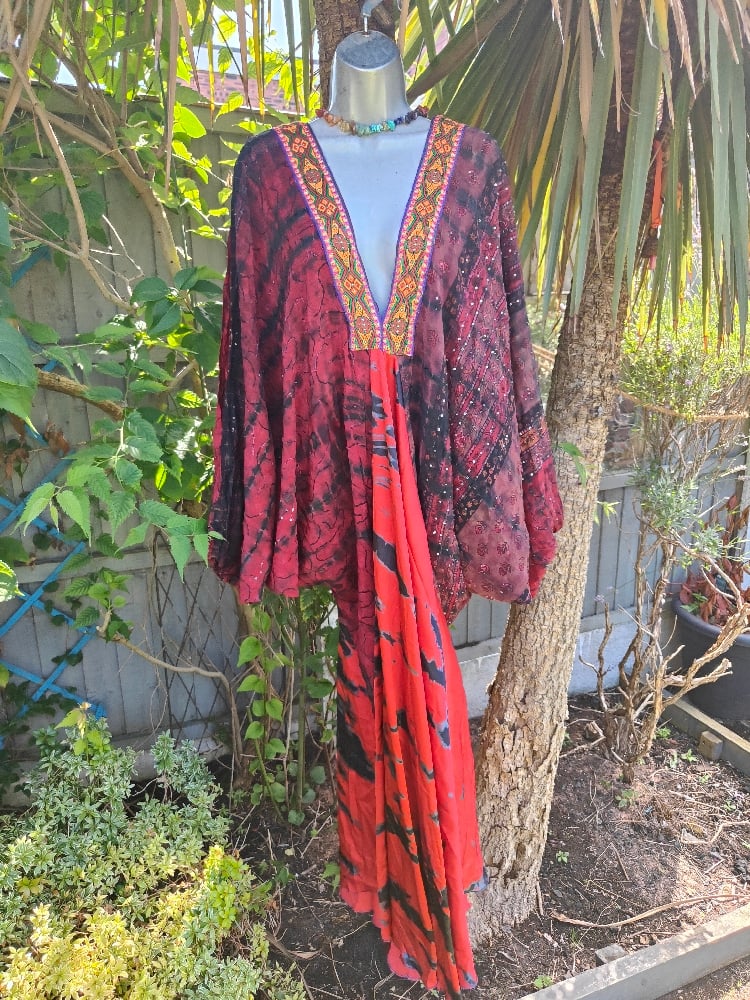 Wanderlust maxi dress Sari tie dye RED upto 18 uk