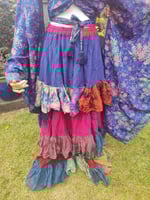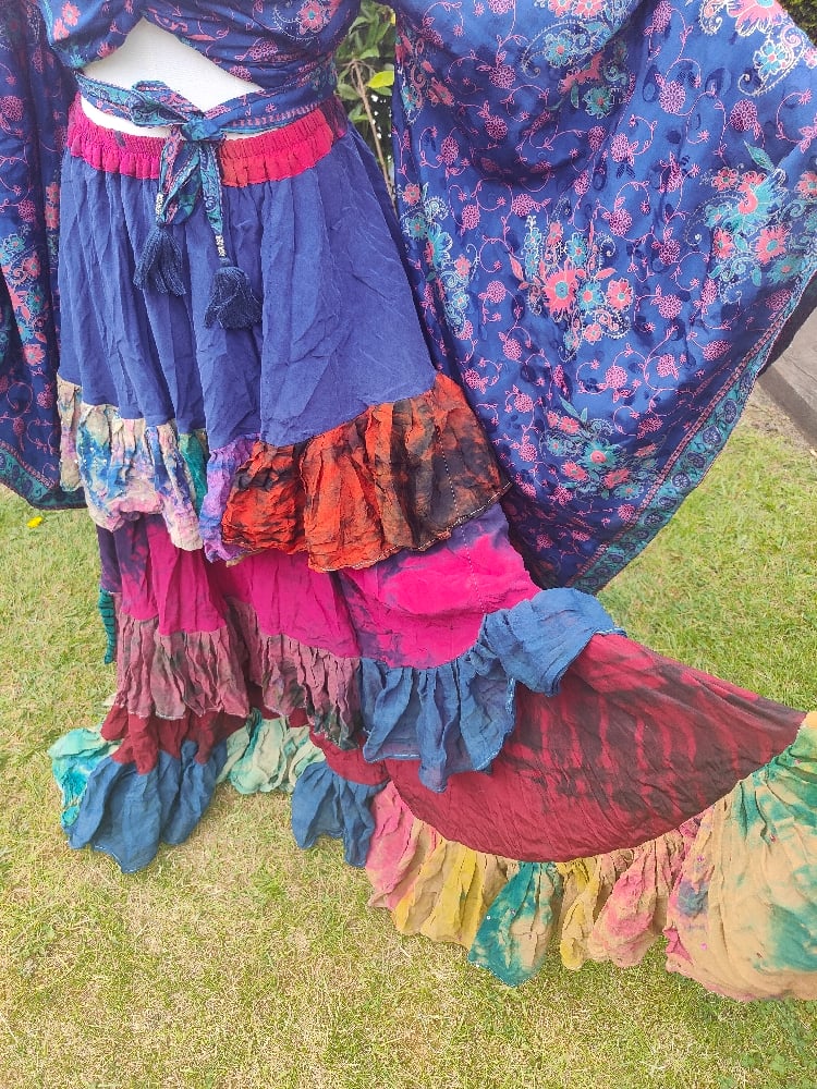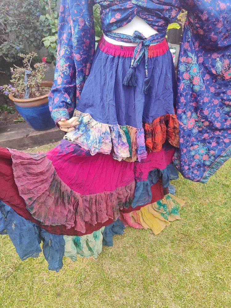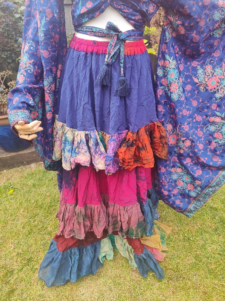 Three tier vintage recycled tie dye wedding sari fabric, with elasticated waistband