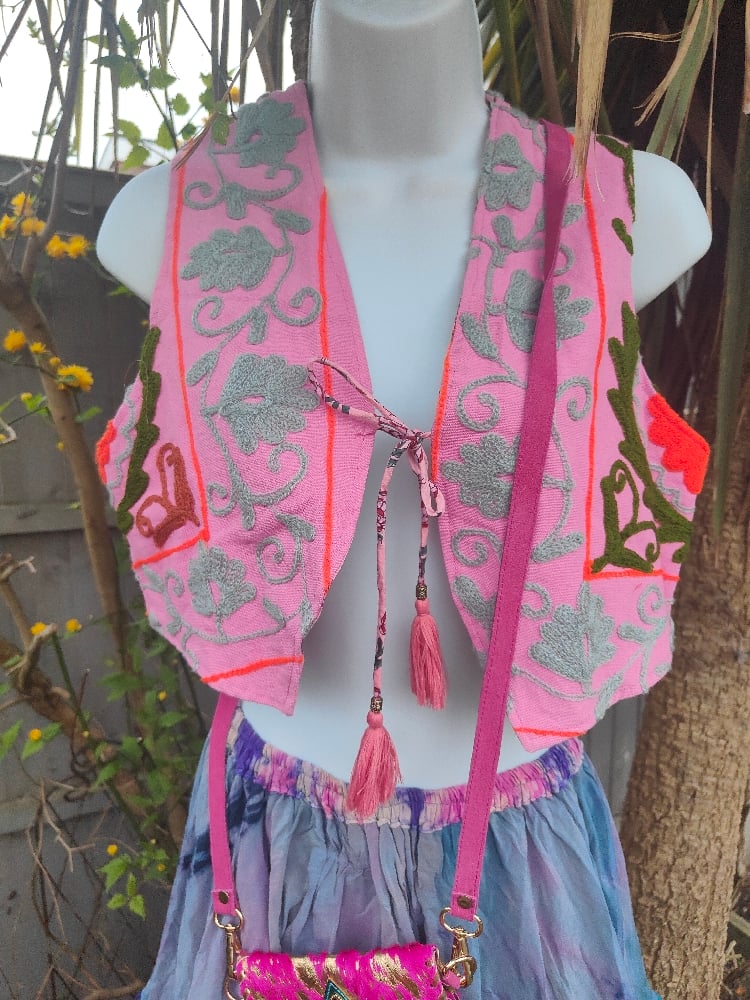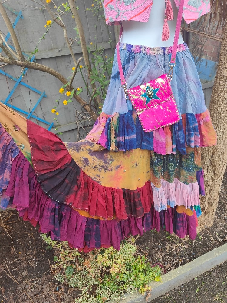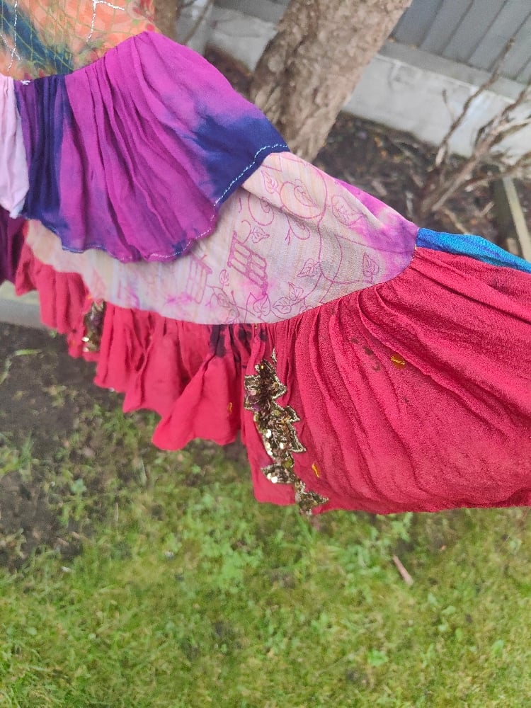 Three tier vintage recycled tie dye wedding sari fabric, with elasticated waistband
