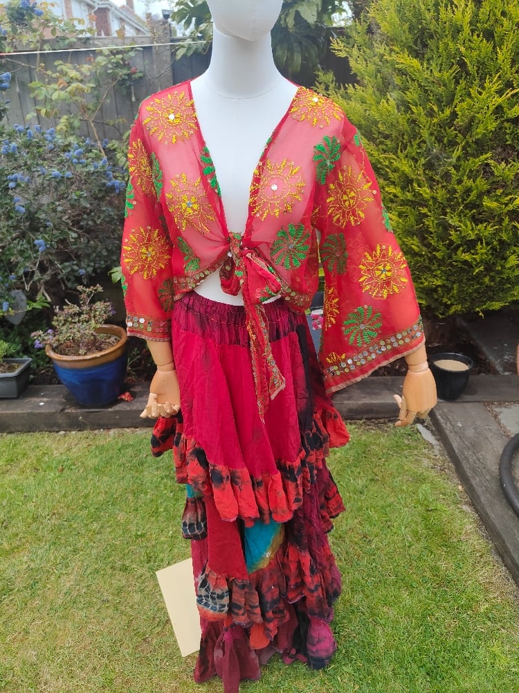Wanderlust maxi skirt / bandeau dress -red flash of rainbow 8-16 uk