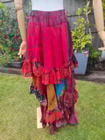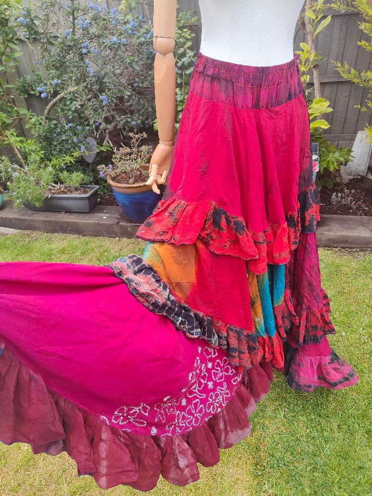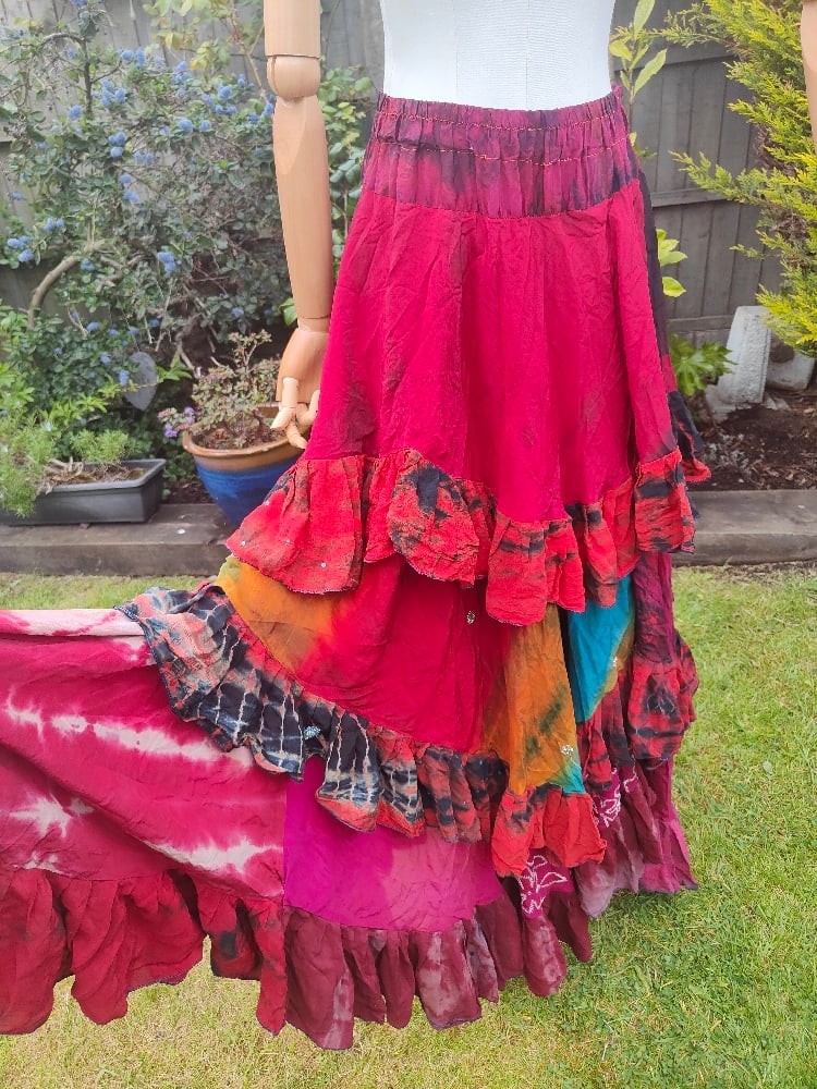 Three tier vintage recycled tie dye wedding sari fabric, with elasticated waistband