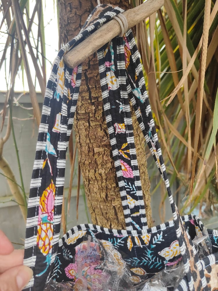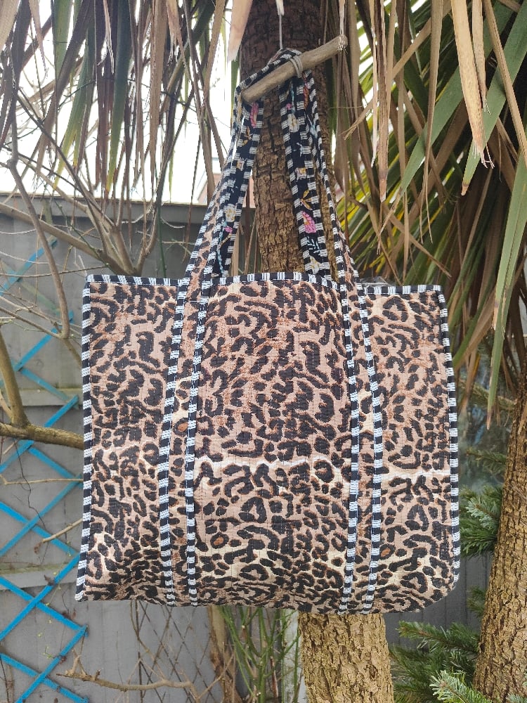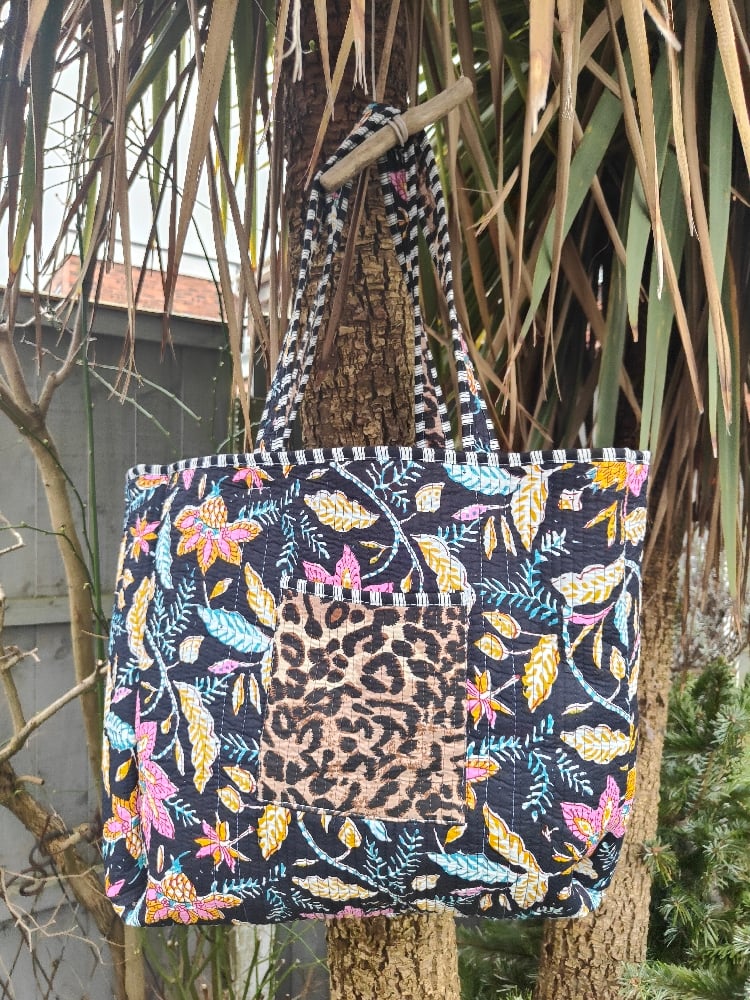 Reversible with a beautiful floral side and leopard print pocket to the front