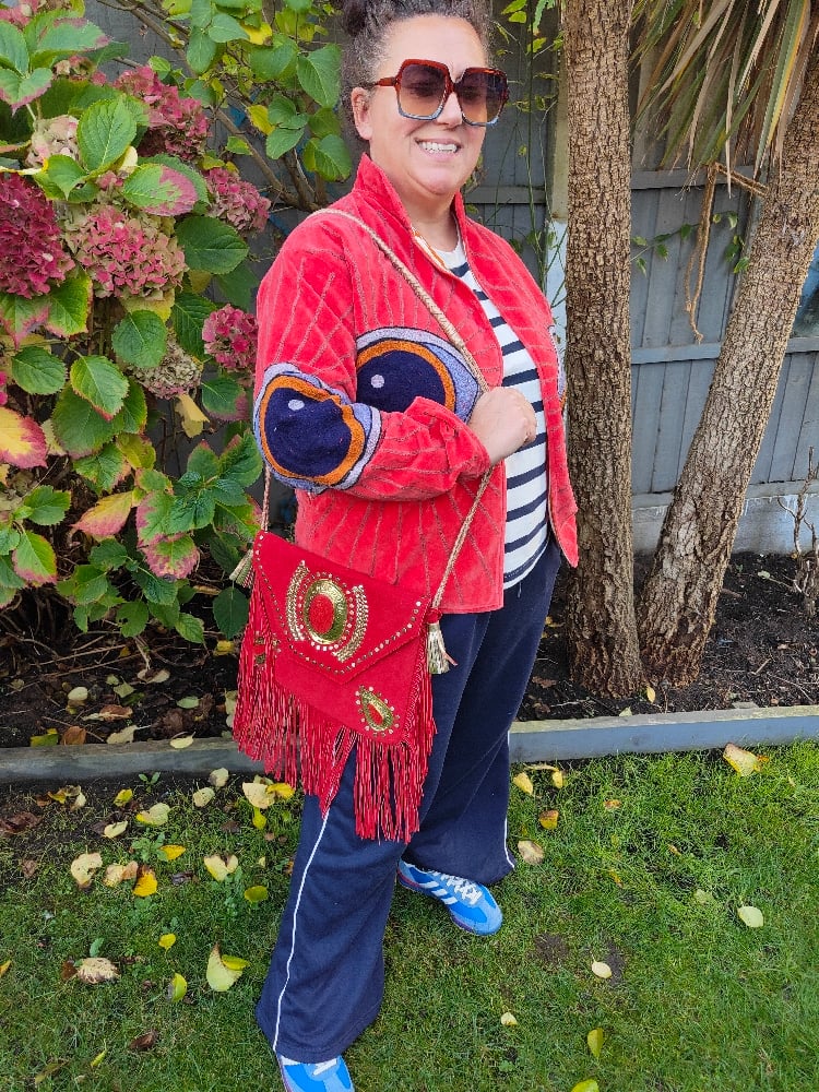 Wanderlust - Velvet evil eye protection jacket - Coral 6- 14 uk