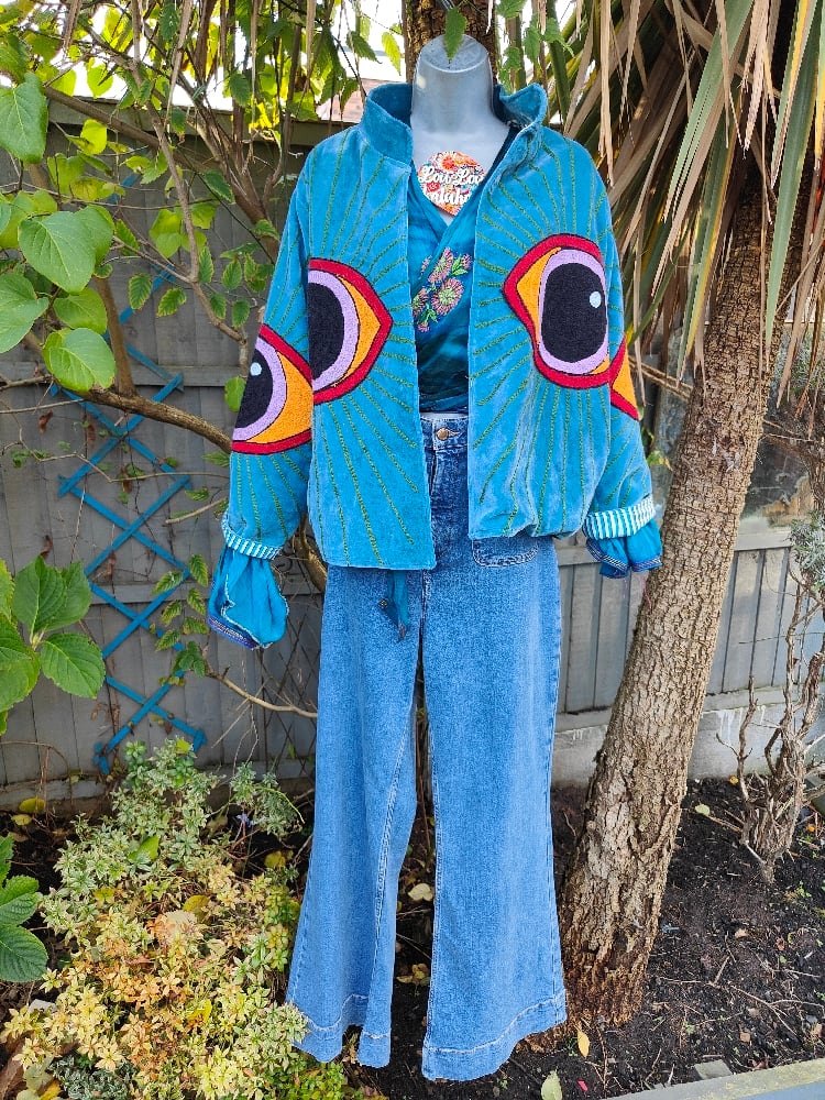 Wanderlust - Velvet evil eye protection jacket - Turquoise 6-12 uk