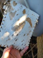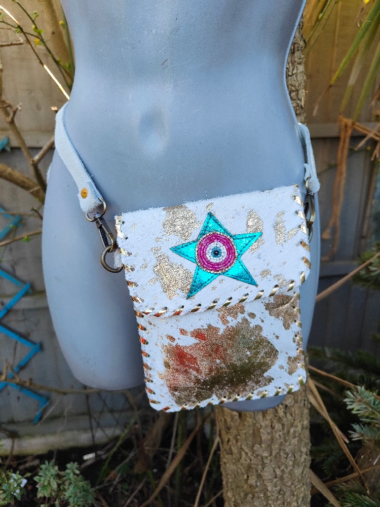 Cowhide fabric with leather details, all unique and handmade so each will be different to each other.