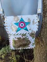 Woodstock cross body /passport bag - Cream with pink and turquoise star