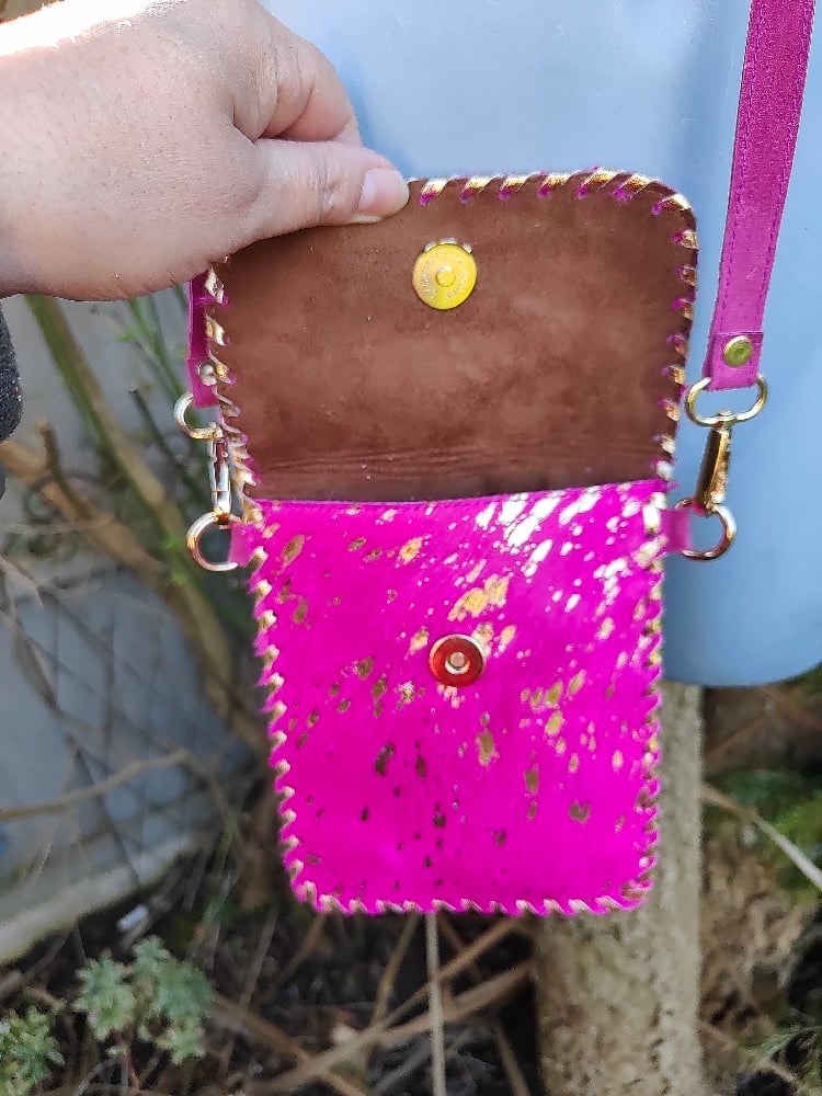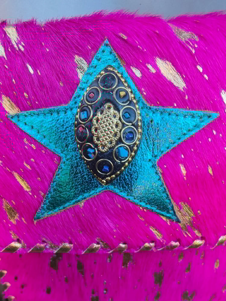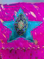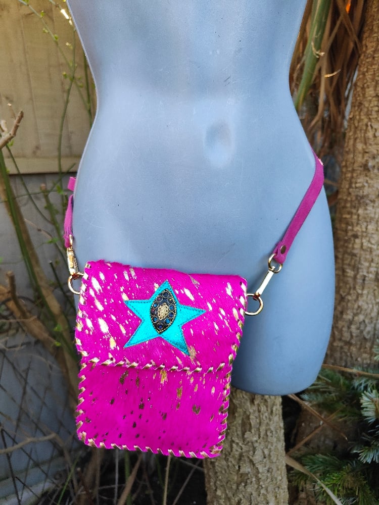 Woodstock cross body /passport bag - Hot pink and turquoise star