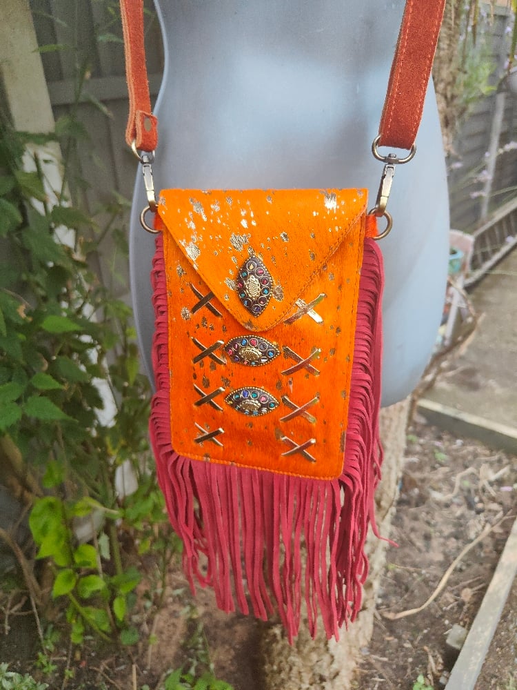 FUR Baby Mobile /waist bag with fringes. And stone detail