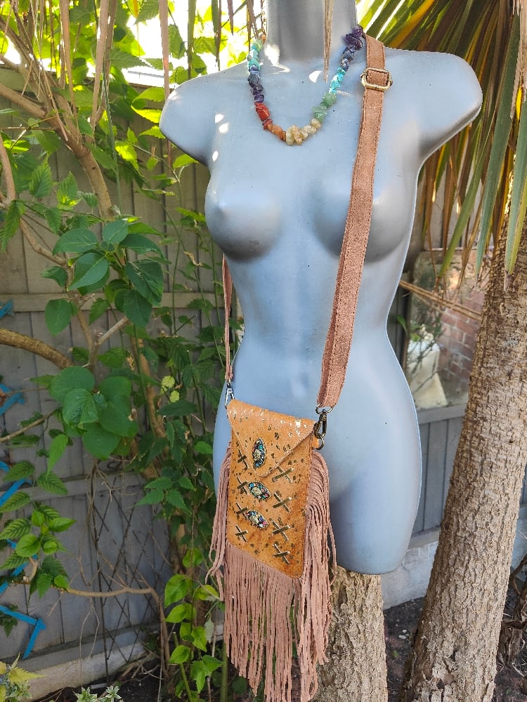 Made from fur (cowhide) and leather suede and charms