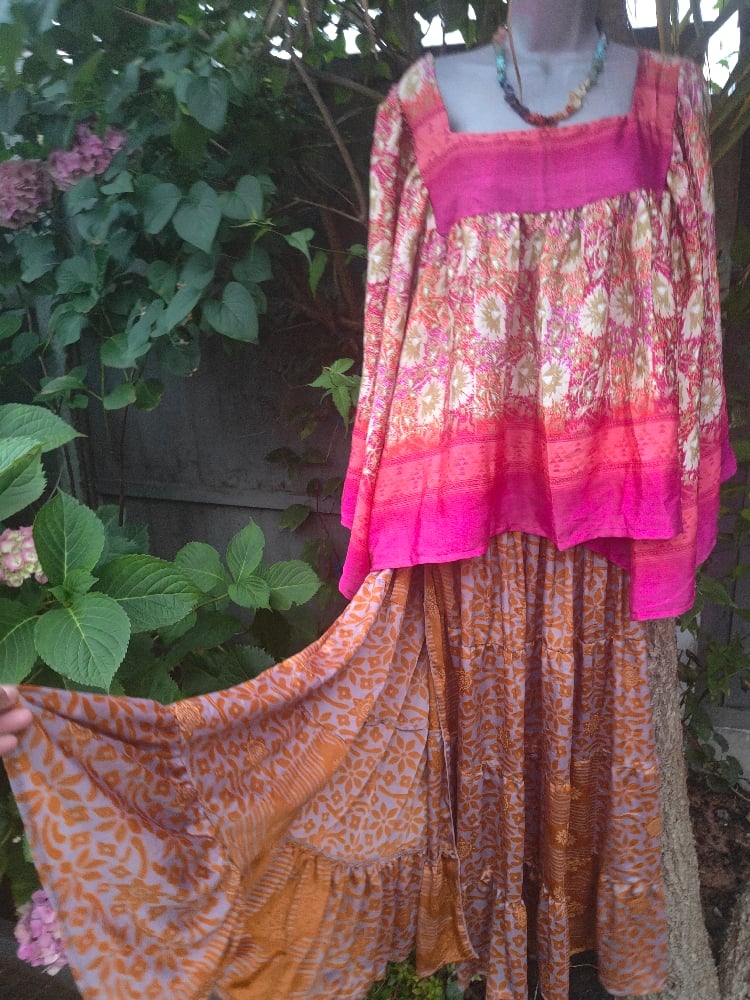 Zara Spilt Skirt- Sari fabric yellow and nude ish